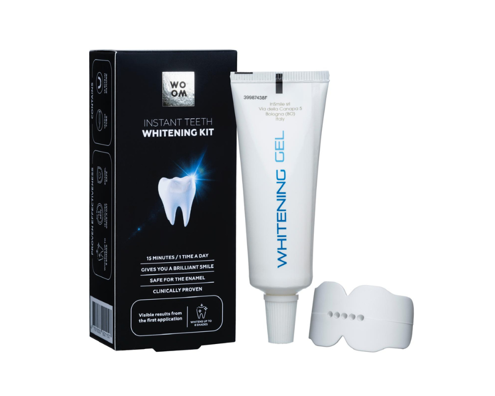 WOOM Instant Teeth Whitening rinkinys suteikia galimybę pasiekti profesionalius balinimo rezultatus namuose. Kliniškai patvirtinta formulė yra saugi emaliui ir jautriems dantims. Rinkinys paprastas naudoti, o pirmuosius rezultatus galima pamatyti jau po kelių dienų.