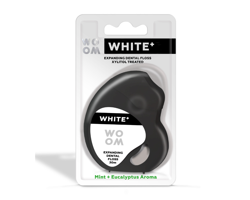 WOOM White+ Riser® išsiplečiantis dantų siūlas pašalina iki 40 % daugiau apnašų nei įprasti dantų siūlai. Jo unikali technologija padeda sumažinti dantenų kraujavimą (42 % veiksmingiau nei standartiniai siūlai), o mėtų ir eukalipto aromatas suteikia gaivos pojūtį. Ksilitoliu dengtas siūlas apsaugo nuo karieso ir apnašų formavimosi.